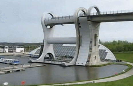 It was designed for an easy way of transporting canal boats upward. It is in Scotland and it is called The Falkirk Wheel!
